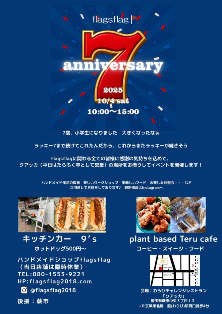 おかげさまでハンドメイドショップflagsflagも今年で7周年を迎えました!